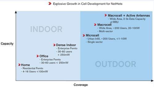Wireless networks are rapidly evolving into heterogeneous networks that can employ a variety of base station sizes and types. In addition to macrocells, these networks currently employ microcells, urban cellular, picocells, and even femtocells. These different kinds of base stations must meet different needs. For macrocell and Cloud-RAN architecture, baseband and backhaul processing is separated from RF using CPRI/OBSAI over fiber. Small cells have a higher level of
